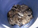 Yesterday morning we woke up to find 4 baby racoons in our garbage can. Either their mother was trying to teach them a lesson or she is twisted concept of daycare. Either way, the 4 tikes spent the day with us and later took off that night.